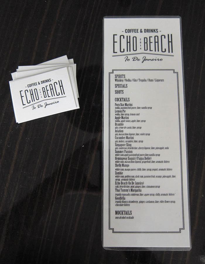 ............................................ Interiors Projects Logos Covers Books Prints Publications Videos ............................................ Sti Skia Ton Vraxon Urbanity Caratex Lookbook King George Simplicity The Tomb of Christ Paradise Geometry Lazy Boy Team We Will Always Have Greece Moodlikeme Darling Bar Echo Beach Concept Store Metropolis Tribeca Meze Tony Bonanno Tora Tora Tora Plus X Top Spot MMD Shiping Services National Printing Office 9 Magazine Ethnodata ............................................ Echo Beach Cafe Bar Identity / Logo / Cards / Catalogue Sign / Decoration 2014 Ios Island |