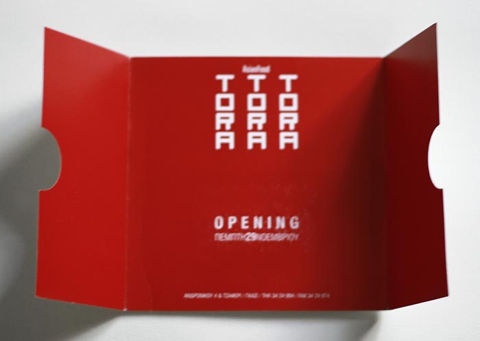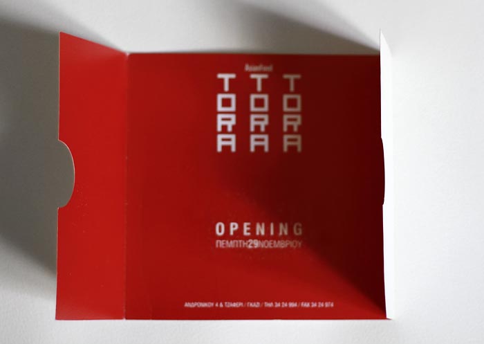 ............................................ Interiors Projects Logos Covers Books Prints Publications Videos ............................................ Sti Skia Ton Vraxon Urbanity Caratex Lookbook King George Simplicity The Tomb of Christ Paradise Geometry Lazy Boy Team We Will Always Have Greece Moodlikeme Darling Bar Echo Beach Concept Store Metropolis Tribeca Meze Tony Bonanno Tora Tora Tora Plus X Top Spot MMD Shiping Services National Printing Office 9 Magazine Ethnodata ............................................ Tora Tora Tora AsianFood Restaurant Identity / Logo / Cards / Catalogues Invitations / Signs / Images 2004 Athens |